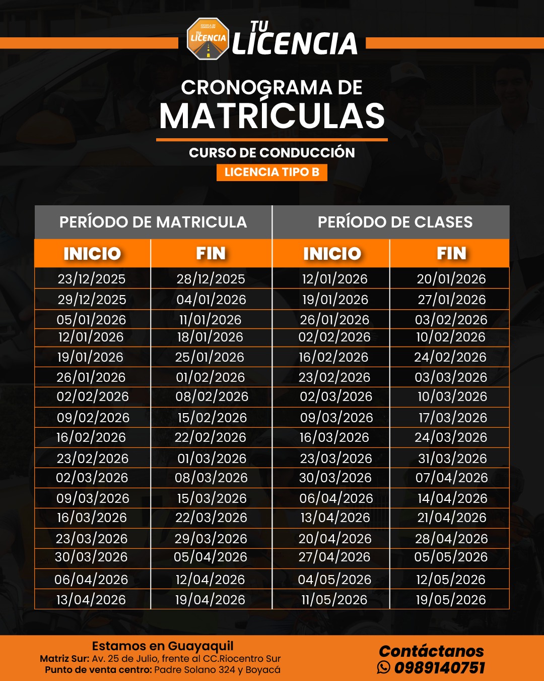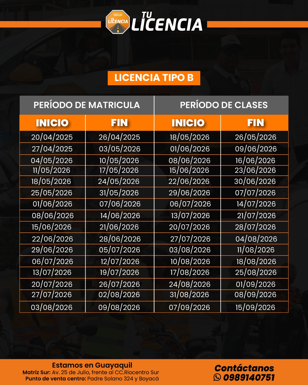 Fecha de cursos – licencia tipo B