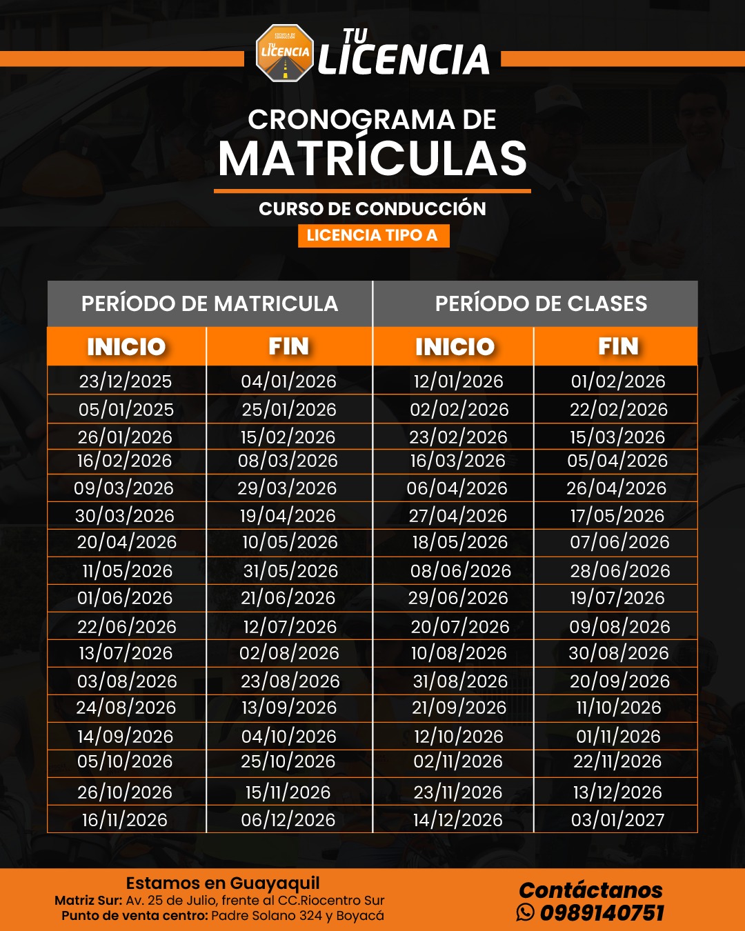 Fecha curso – licencia tipo A